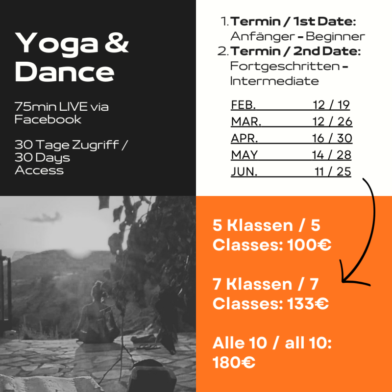- Monatsmitgliedschaft Online: 2x täglich Online Trainings á 75min; 10er Block & Einzeltraining möglich